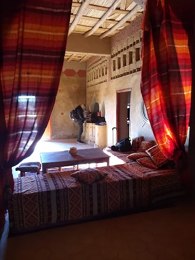 Este alojamiento se encuentra situado en el desierto de Ouzina, un lugar mágico e inalterado, caracterizado entre otras cosas por la mezcla de gamas de colores que este alberga, solo hay que ver una foto de este desierto para saber que es diferente y que te hipnotizará. Este albergue conserva en estado puro la paz y el silencio del desierto, lejos del bullicio turístico de otras zonas. Si lo que buscas es conectarte con el universo y descubrir zonas maravillosas que poder descubrir y explorar, sin duda es tu destino. Hay que destacar que su ubicación es muy buena, se encuentra tan solo a unos 70 km de Merzouga, lo que la hacen fácilmente accesible, aunque no dispone de una carretera asfaltada, por lo tanto su acceso se puede realizar únicamente con vehículos todoterreno. Esto le confiere un autentico sabor de aventura que hacen de este lugar un enclave perfecto para visitar. La Kasbah de Ouzina, a diferencia de otros lugares, os da la oportunidad de descubrir el desierto en su máximo esplendor, este alojamiento es ideal para todos los que vengan buscando conectarse de la manera más directa posible con el desierto así como con la paz que éste transmite y con el silencio y tranquilidad que se respira desde todos los ángulos de este idílico lugar.
